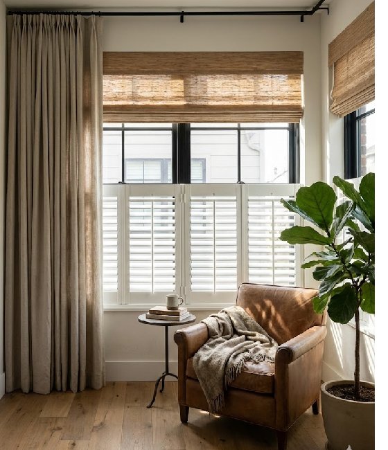 Practical light control for coastal interiors.