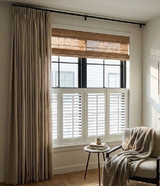 • Layer window coverings for day-to-night flexibility